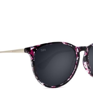 - Shiny Silver and Customer Purple and Black Tortoise frame featuring etched design
