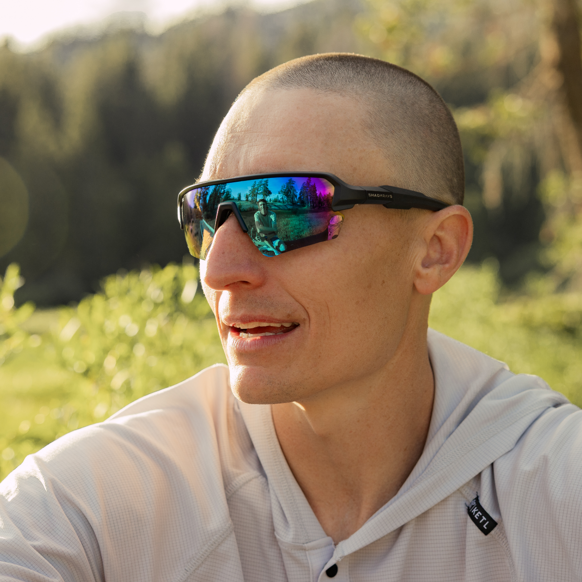 Built for motion. this semi-rimless sport frame provides panoramic coverage. lightweight comfort. and a no-slip rubber grip that stays in place.