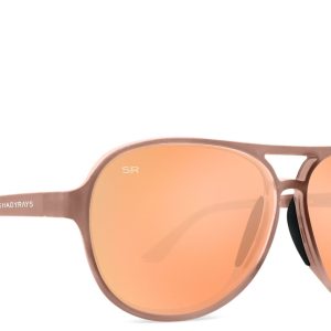 - Polarized. shatter-resistant peach mirrored lenses with grey tint featuring 100% UV protection. Saltwater and scratch resistant.