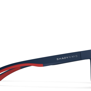 - Matte Navy TR-90 frame with raised silver logos.
