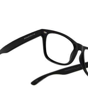 Gloss black frame with polished metal hinges and metal Shady Rays emblem complete with prescription lenses custom-made for you in our US-based optical lab. Includes signature hard case.