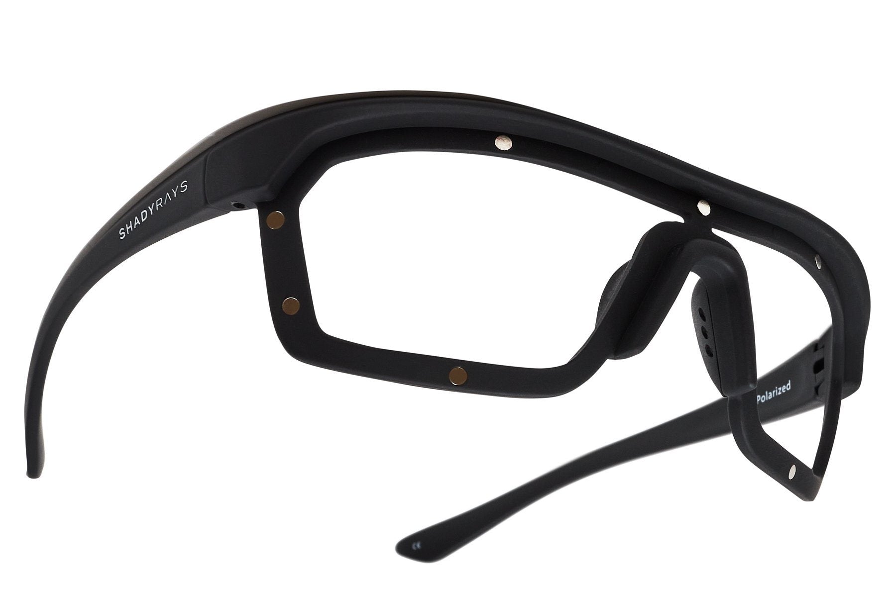 - Features snap hinges. comfort padded nose pieces. and metal inset Shady Rays logo