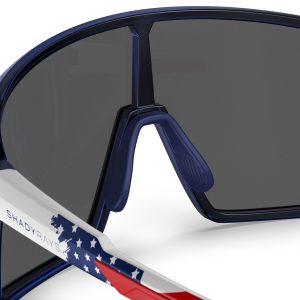 - No-slip design featuring rubber adjustable nose pad. and dual injected American flag temples with air flow sweat channels.