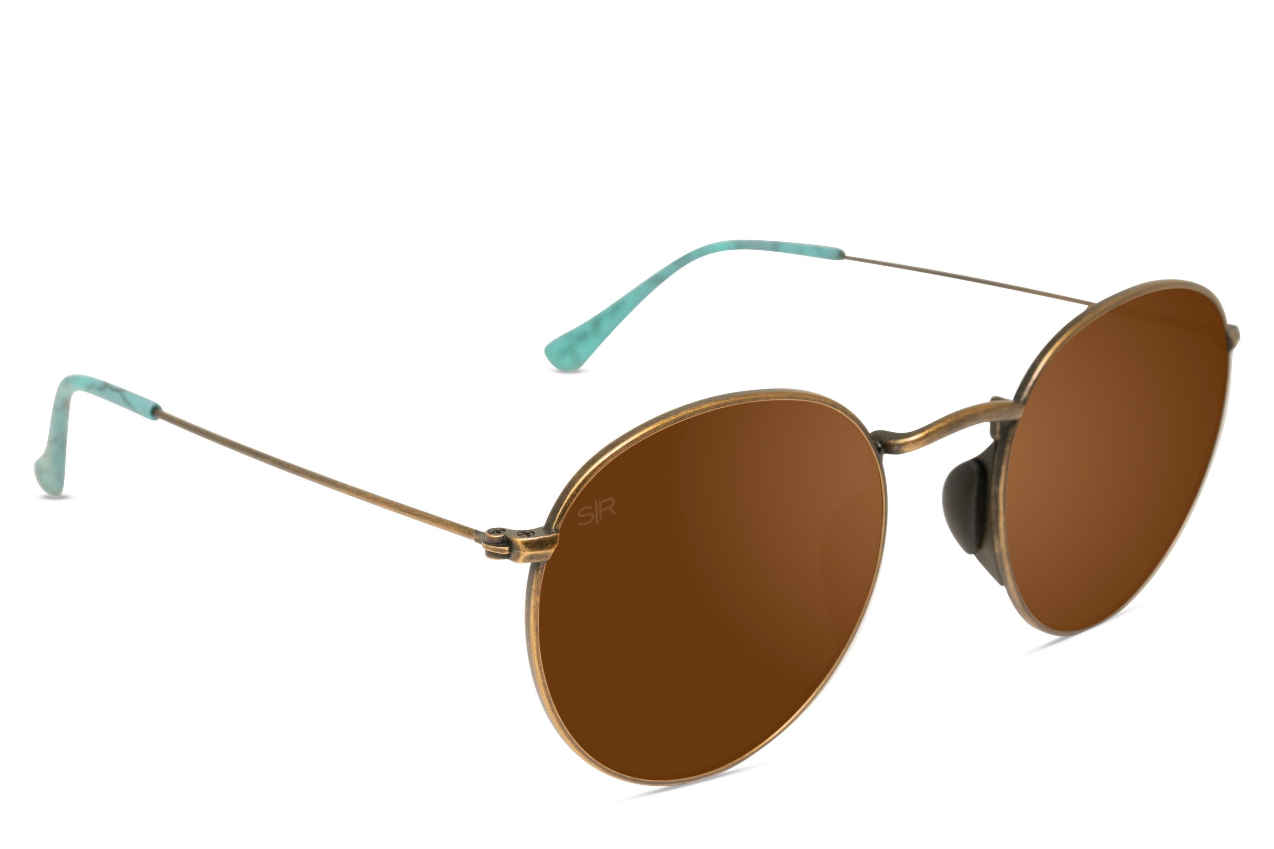 - Antique Gold Metal frame with vibrant turquoise temple tips